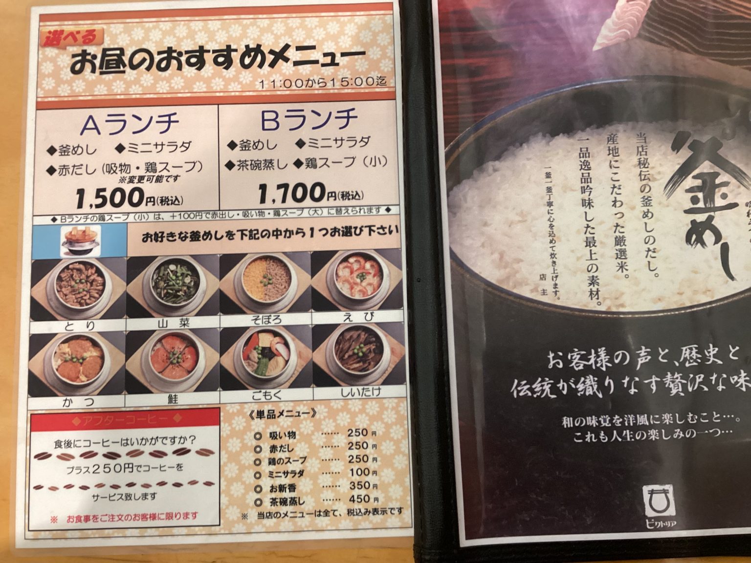 やはり、人気の行列店。たくさんの釜飯ランチメニューがあります。